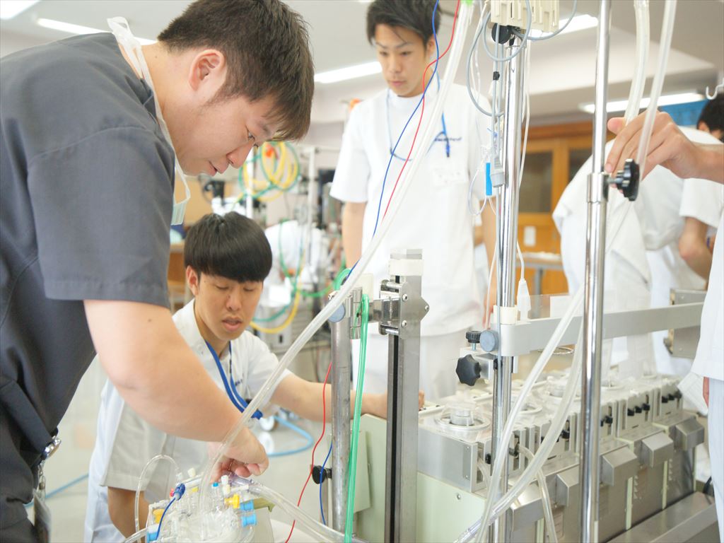 体外循環分野の実習として3名の現役の臨床工学技士の方を招き、臨床実習前の実践学習を行いました。