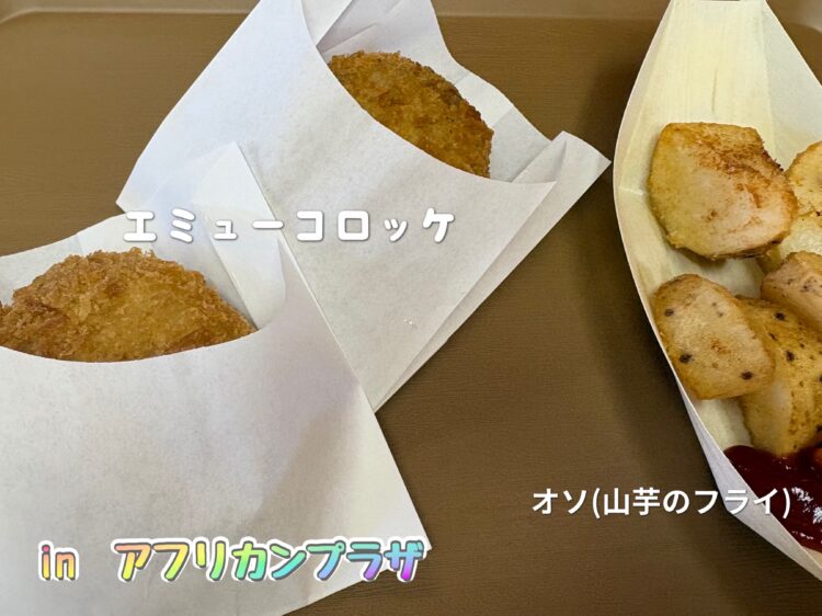 食事は 各自好きなエリアで楽しみましたが、中にはアフリカンプラザでちょっと冒険した人も!
