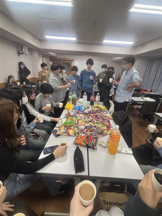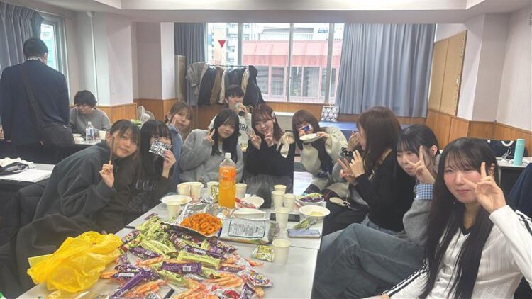 お菓子を囲みながら、日常のちょっとした出来事や最近のことなど、色々な話をして楽しい時間を過ごしました☺️リラックスした雰囲気の中で、笑顔や笑い声があふれ、自然と会話も盛り上がりました🎶こうした時間を通して、クラスの距離がさらに縮まったように感じます!