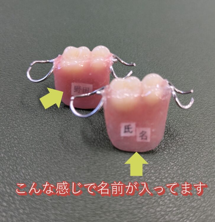 最終的には、高齢者施設を利用する患者さんを想定し、個人名を義歯に埋め込む方法を取り入れて提出しました。これは、施設内での紛失防止や本人確認に役立つ工夫です。