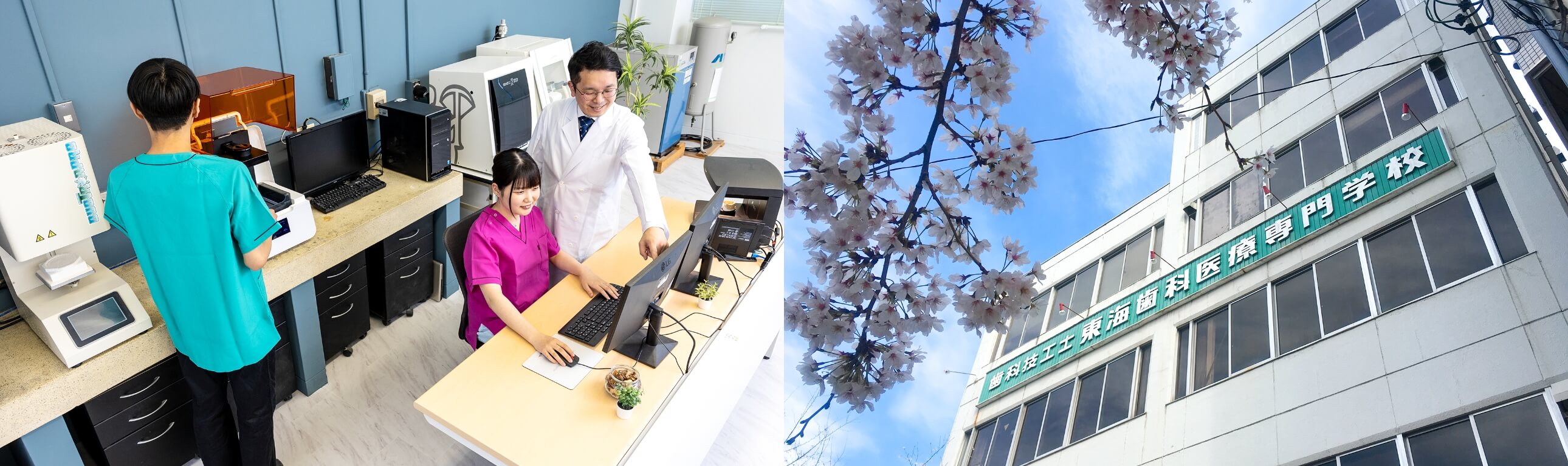 コンピューターを活用して歯をつくるデジタル技工により、製作の効率化や環境改善など歯科医療現場に大きな変革をもたらしています。本校は、名古屋にある昼間2年制の歯科技工士専門学校のうち、デジタル歯科技工の授業時間が全国NO.1!デジタル歯科技工と手作りの技術を学ぶことで、次世代の歯科技工士を目指せます。
