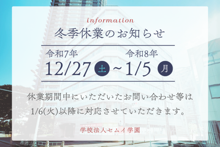 は冬季休業のため、事務手続きなど窓口業務をお休みさせていただきます。