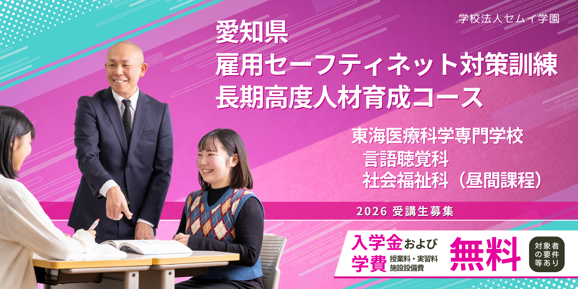 東海医療科学専門学校の「言語聴覚科」および「社会福祉科(昼間課程)」が、愛知県の実施する職業訓練の委託訓練制度の対象校として選定されました。