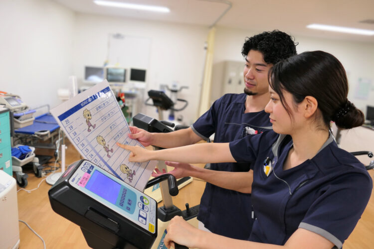 ICU(集中治療室)やHCU(高度治療室)の超急性期から外来まで、循環器内科と心臓血管外科を対象に心臓リハビリテーションを担当しています。