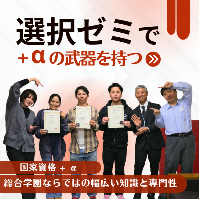 愛知県下最大級、10学科を擁するセムイ学園では、そのスケールメリットを活かした「専門ゼミ」を開講しています。