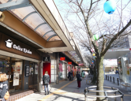 学校から徒歩1分圏内にある藤が丘駅周辺は、ファーストフードなどの飲食店が多く、ランチやちょっとした息抜きをしたい時などに最高!スーパーやコンビニ、ドラッグストアもあって、とっても便利です。